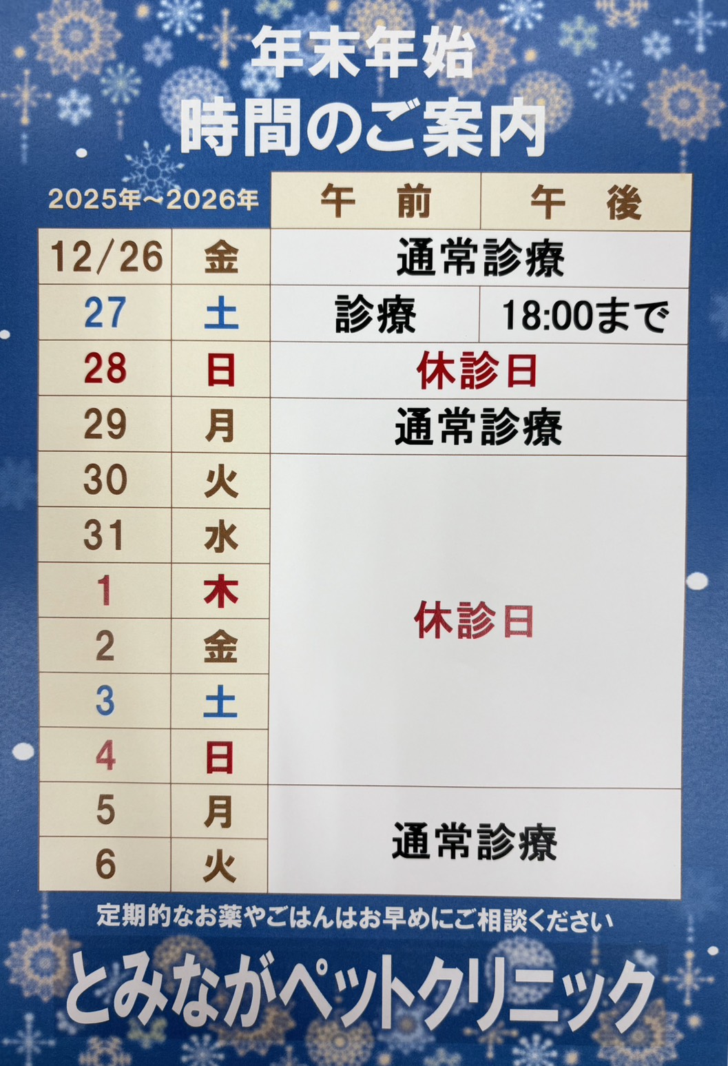 年末年始の診療